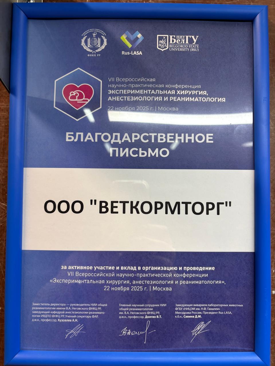 Представители компании ООО «ВетКормТорг» приняли участие в VII Всероссийской научно-практической конференции «Экспериментальная хирургия, анестезиология и реаниматология», проходившей на базе НИИ общей реаниматологии им. В.А. Неговского ФНКЦ РР, г. Москва.