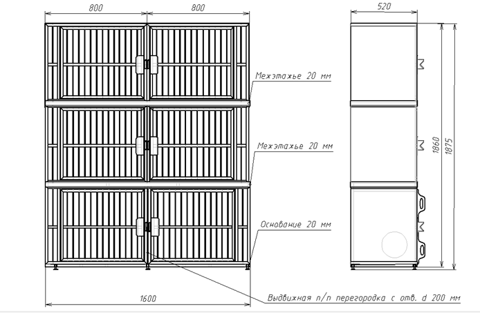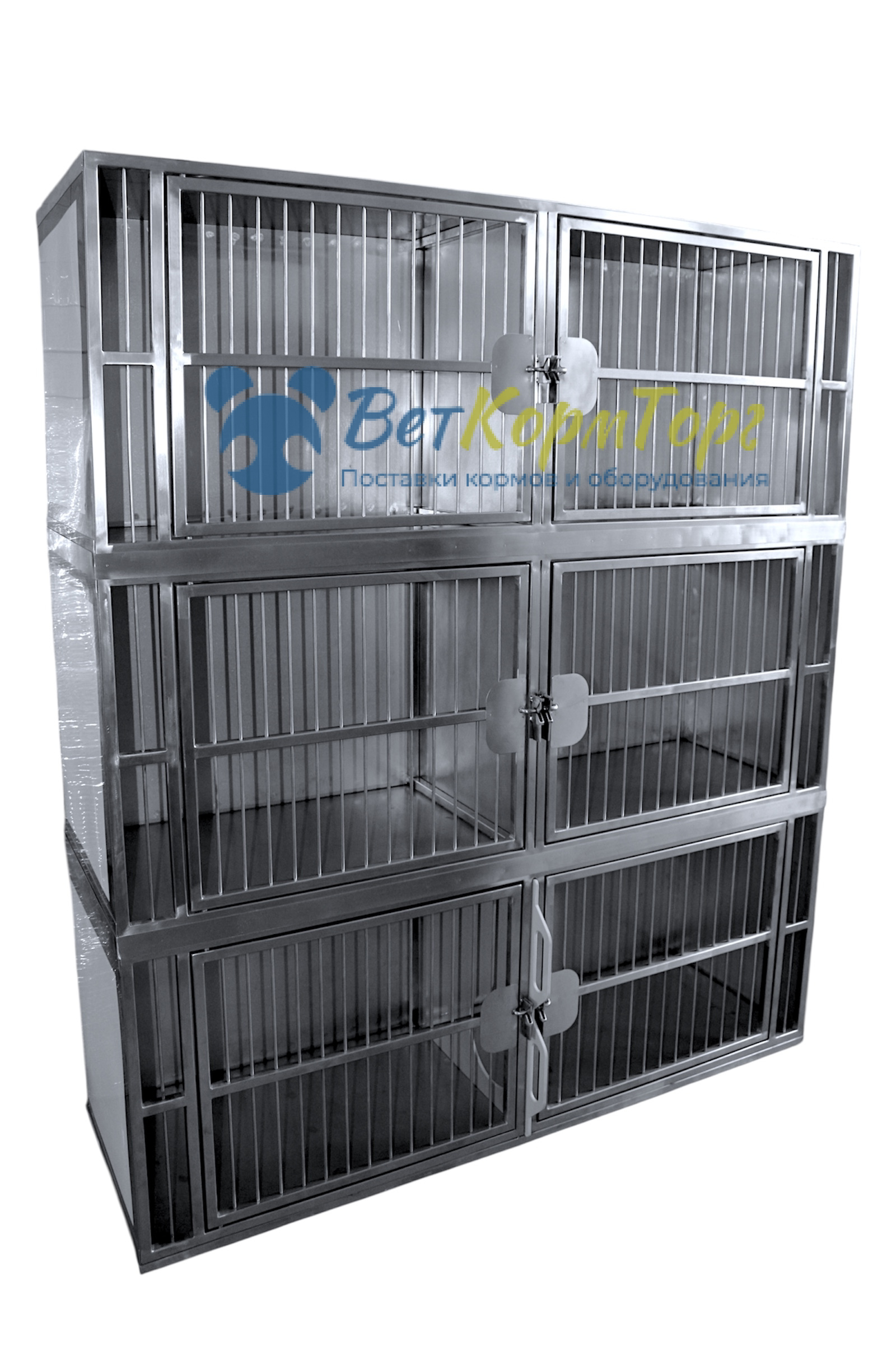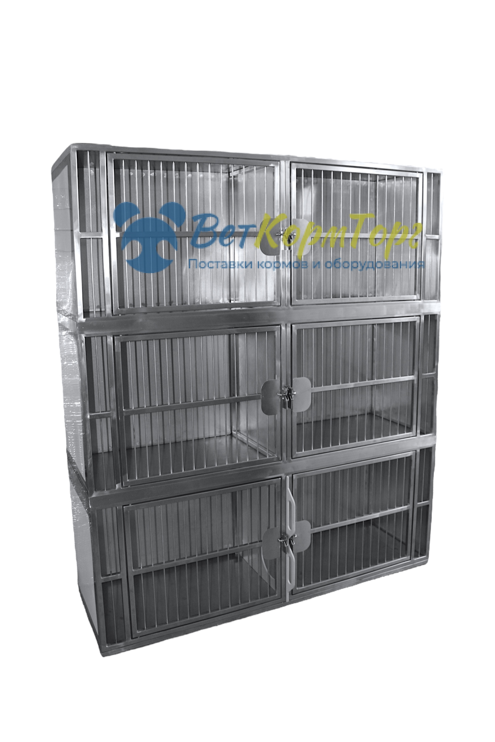 Модуль из 6 клеток нерж стали с полипропиленовой перегородкой 1600х520х1860(1875) на ножках