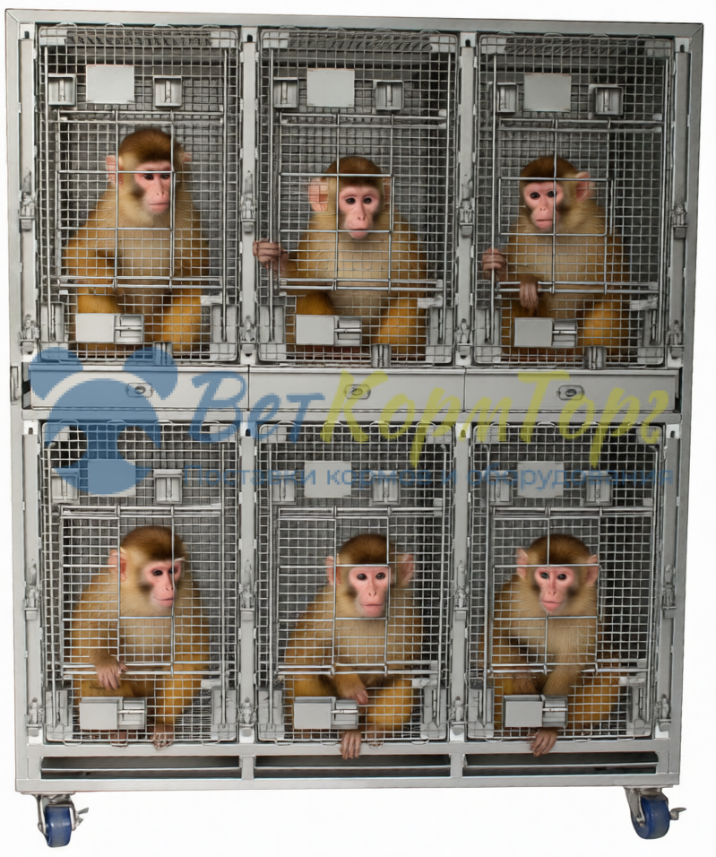 Модуль из 6 клеток для лабораторных мартышек Vetbot CL2009 используют в НИИ, вивариях, медицинских учреждений,