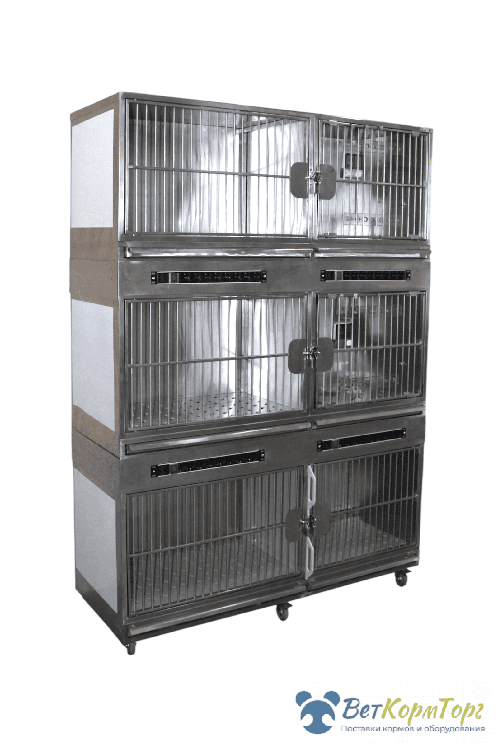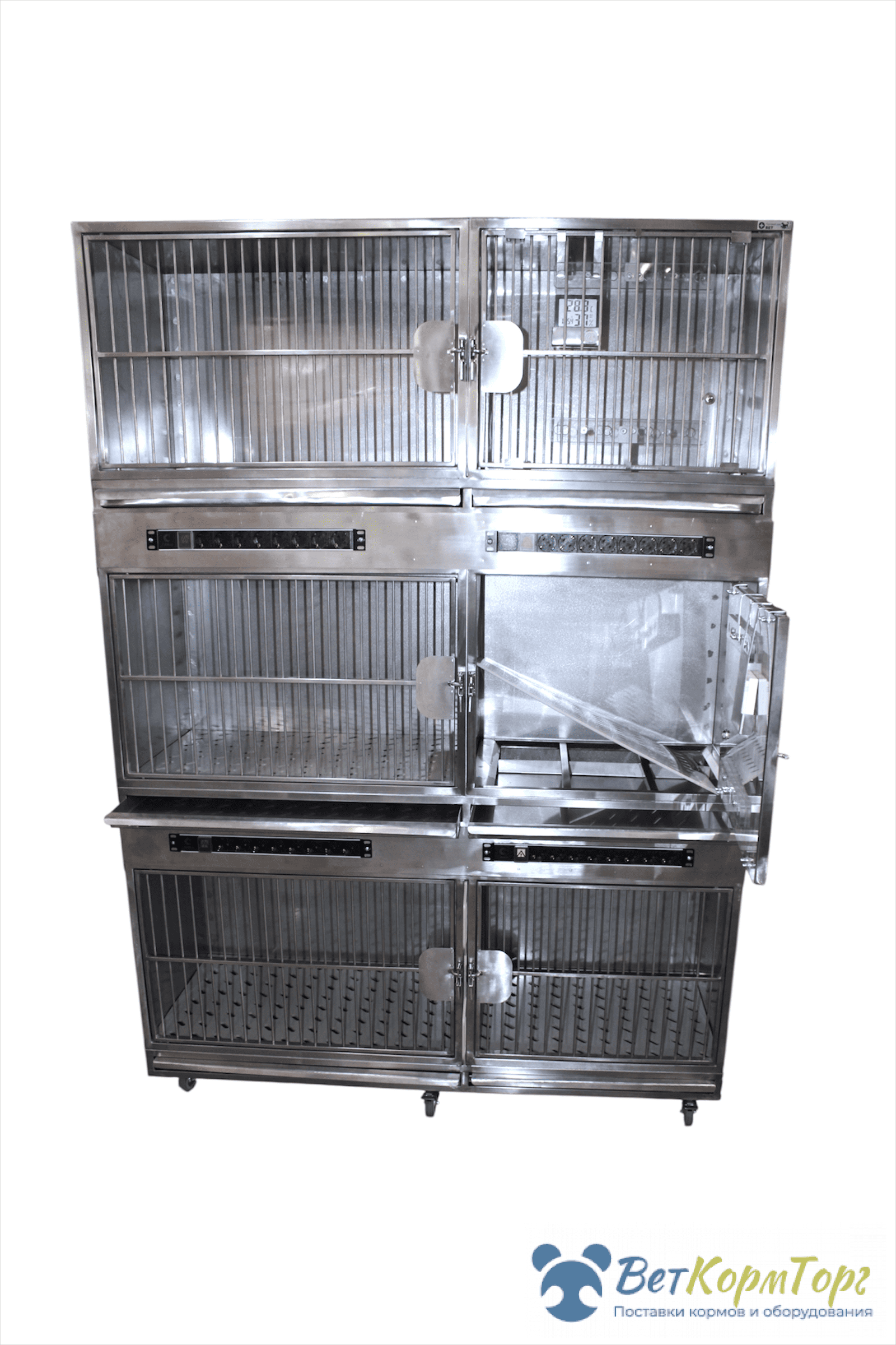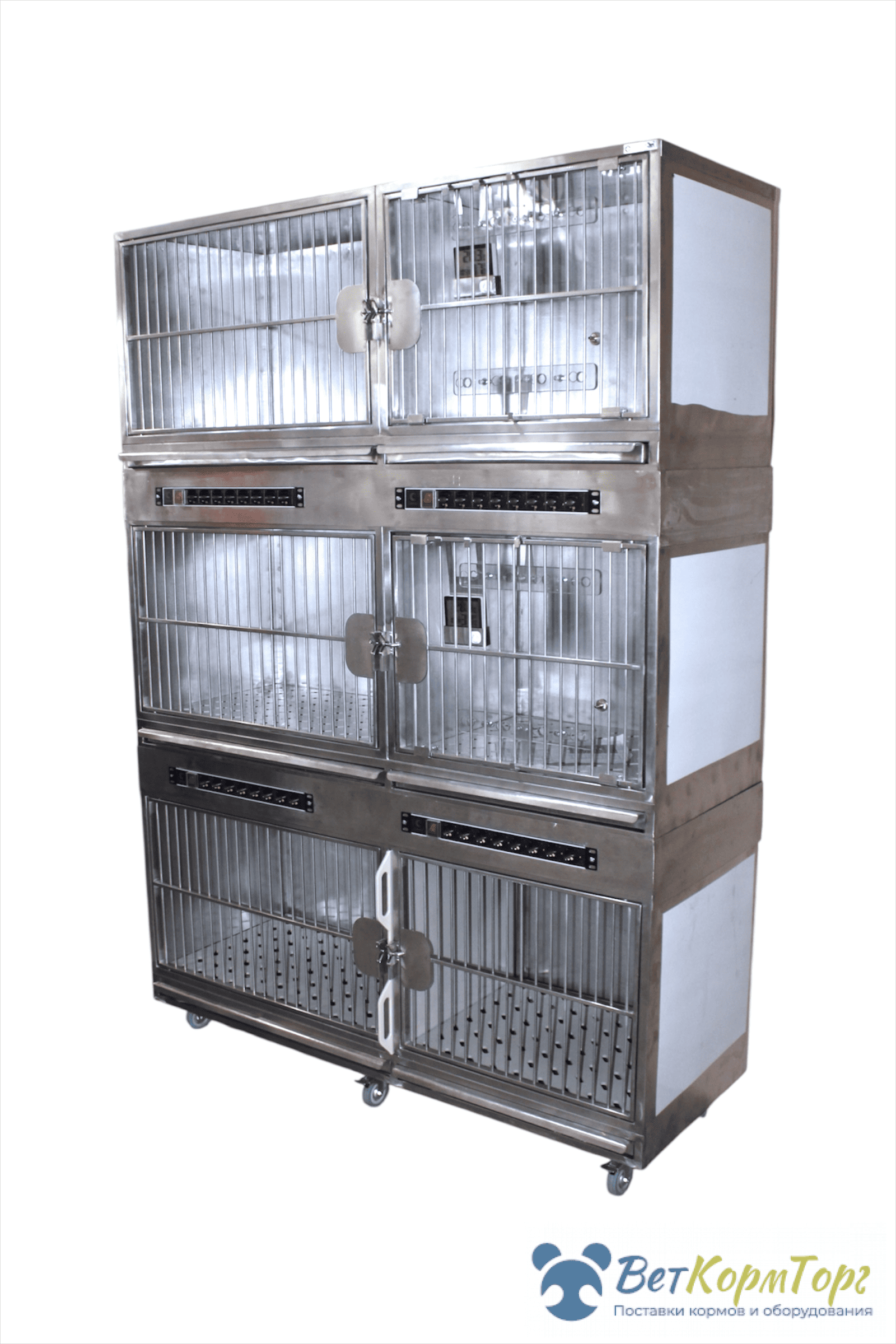 TD 80814N ТД ВЕТ(и) Модуль из 6 клеток нерж стали с 2 камерами оксигенации 1480х550х2000(2100)h с колесами — это современное решение для профессионального содержания мелких домашних и лабораторных животных. Эта система сочетает в себе функциональность, безопасность и мобильность, создавая идеальные условия для стационарного лечения, передержки или проведения исследований.