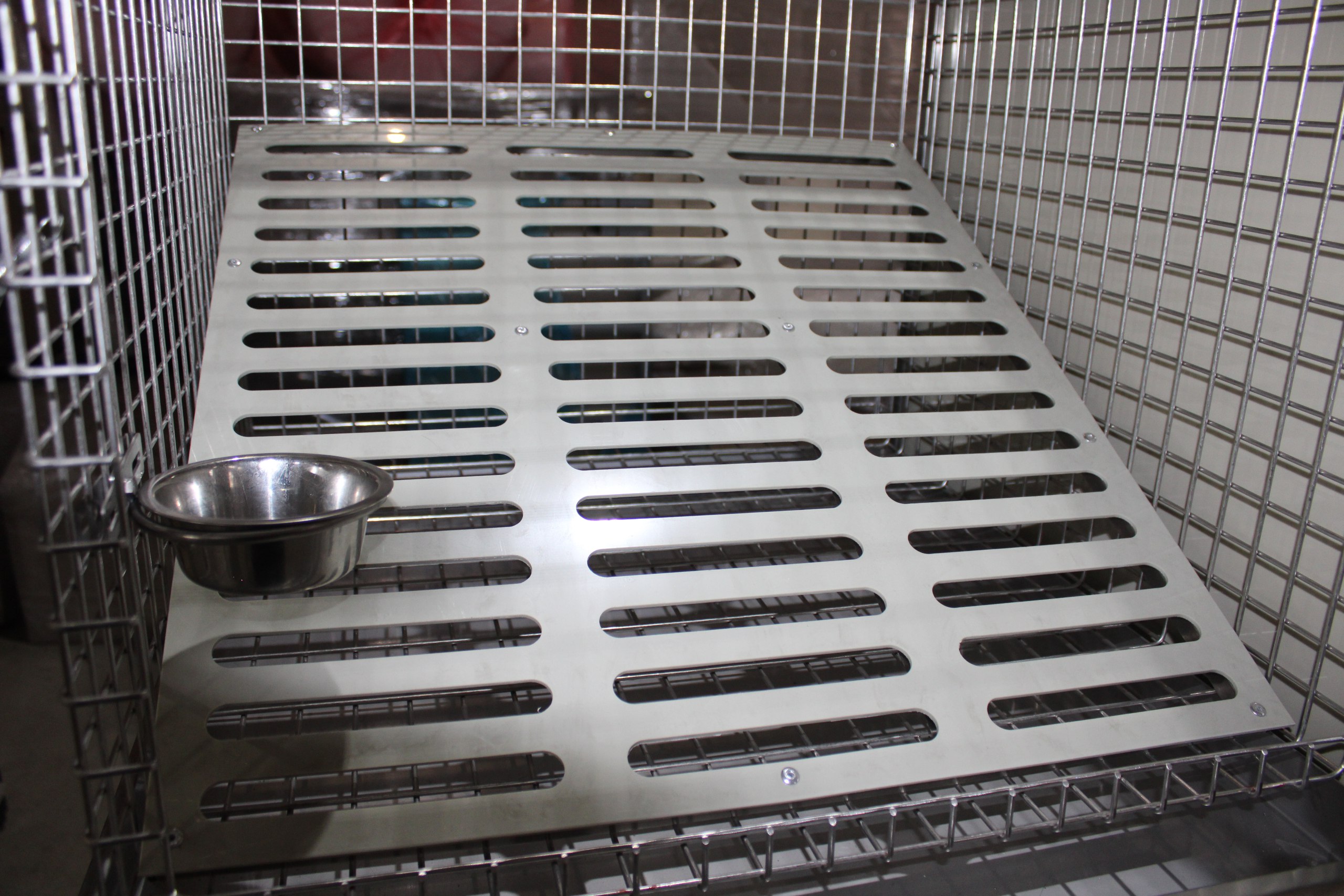 Перфорированный пол: Пол клетки выполнен из перфорированного металла с отверстиями размером 160×20 мм. Это способствует эффективному удалению помета, поддержанию чистоты и сухости в клетке.